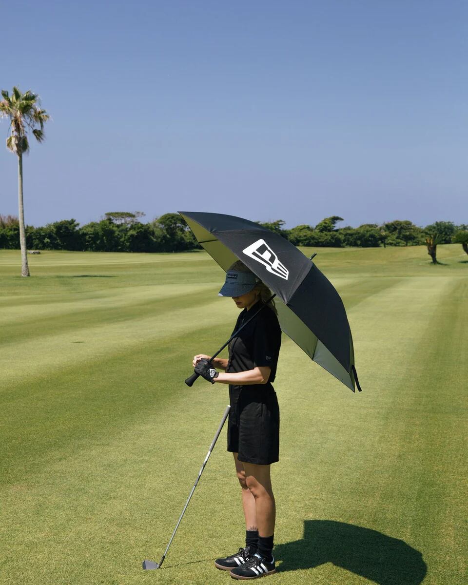 NEW ERA ニューエラ ゴルフアンブレラ 14470862 ゴルフ傘 フラッグロゴ NEW ERA GOLF 晴雨兼用アンブレラ 撥水傘 大型傘 カーボン骨 ゴルフ用品 メンズ レディース ブラック スポーツ観戦