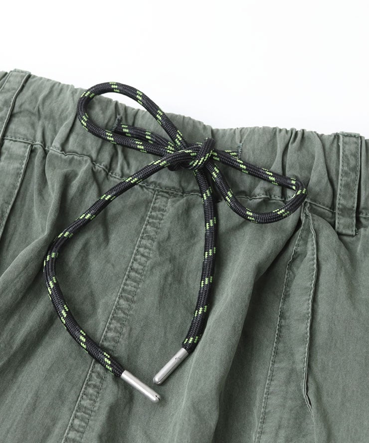 ピグメント加工で古着のような風合いにエイジングされた ショートパンツ。