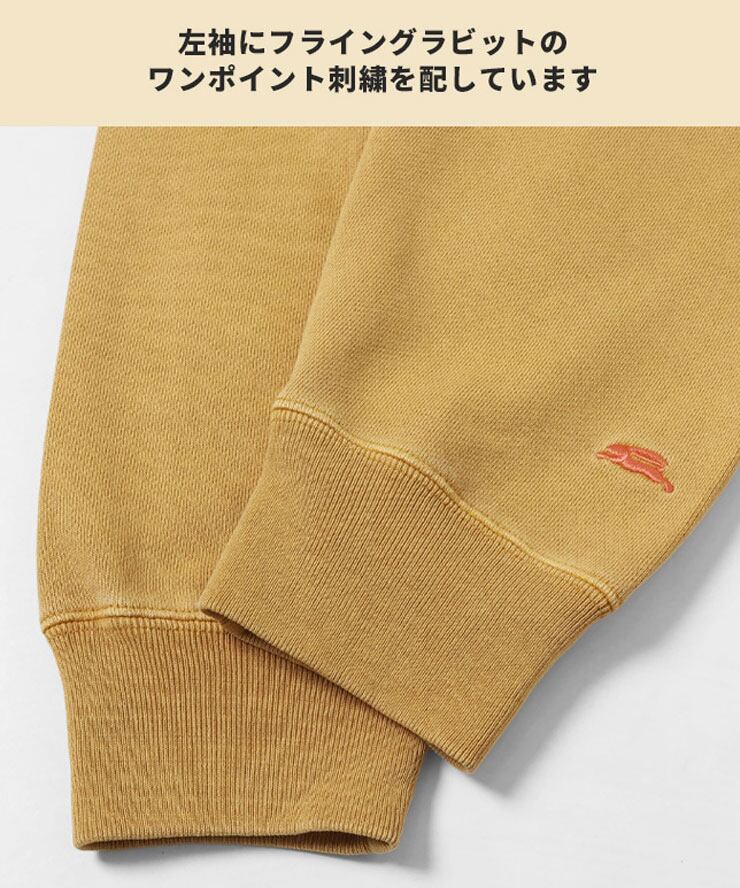 コーマ糸とオープンエンド空紡糸をブレンドした生地は、半起毛加工を施すことで膨らみ感のある仕上がりに。古着のような柔らかな質感と、着込むほどに味が出るピグメント染めの独特な色合いを楽しめます。