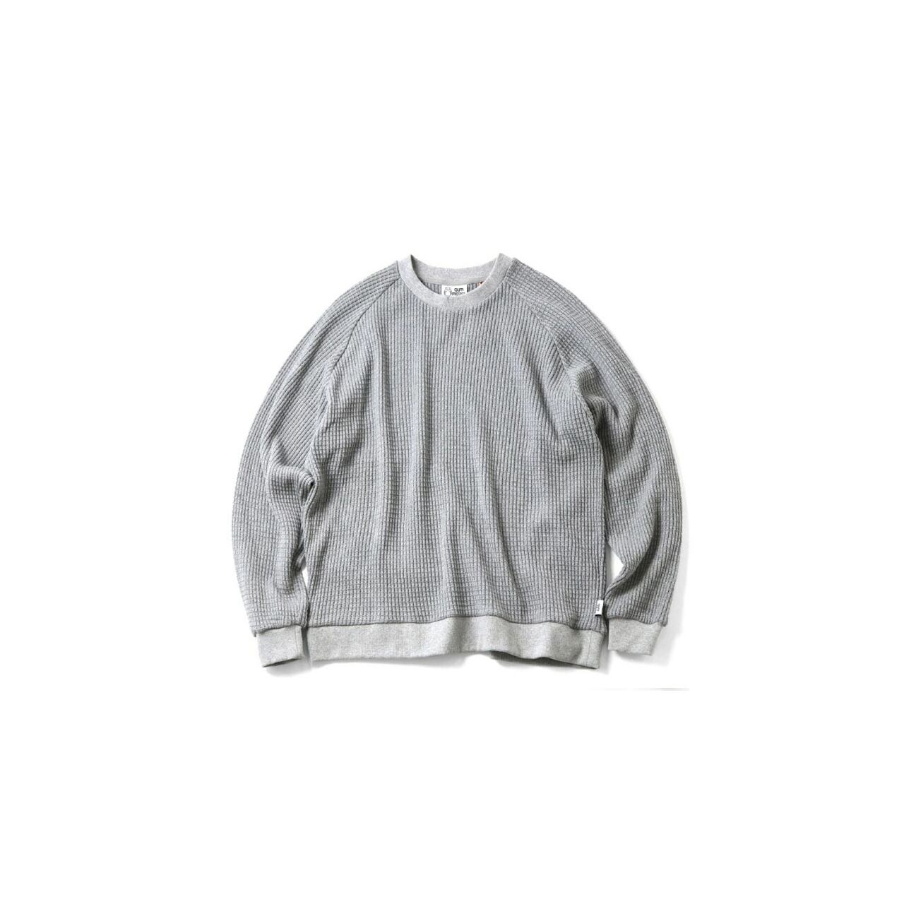 gym master(ジムマスター)の新作「12oz ヘビーワッフルクルーネック G633721」。凹凸感のある表情豊かなワッフル生地を採用し、スウェット感覚で着られる厚みが魅力のカットソーです。