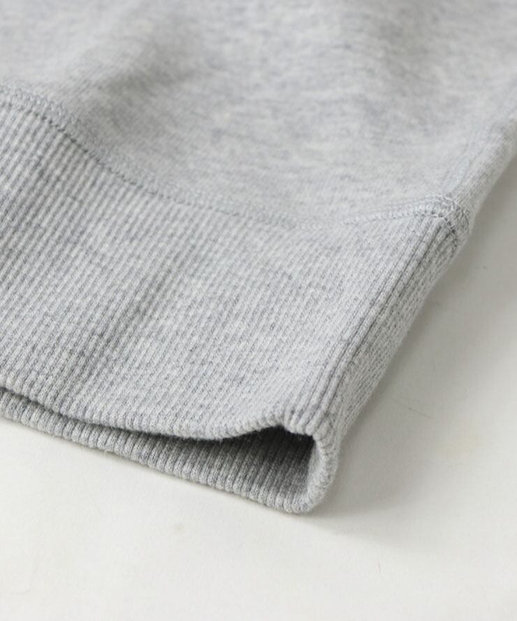 ジムマスターのスウェットクルーネックは、ビンテージの丸編み機で時間をかけてゆっくりと編み上げられた「トンプキン編み」を使用。現代の編み機に比べ約10倍の時間を要するため、生地は空気を含んだふっくらとした柔らかさと、ヴィンテージライクな風合いを併せ持ちます。