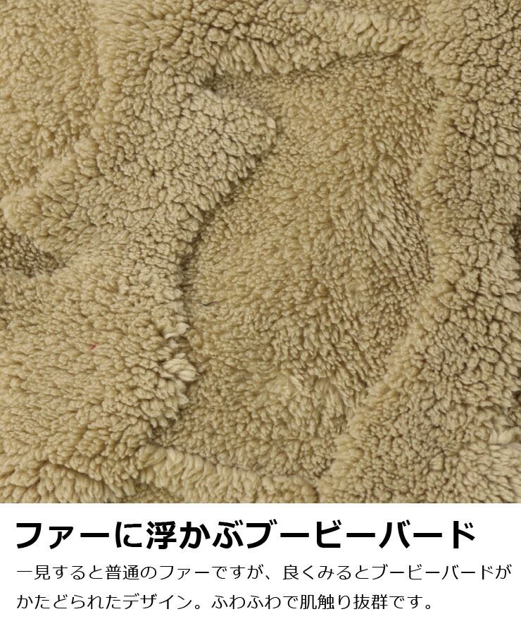 今年はふわふわのファー部分にブランドアイコン「ブービーバード」の型どりが施されたユニークなデザイン。肌触りの良いモコモコフリースが首元をしっかりカバーし、寒い季節の防寒対策に最適です。