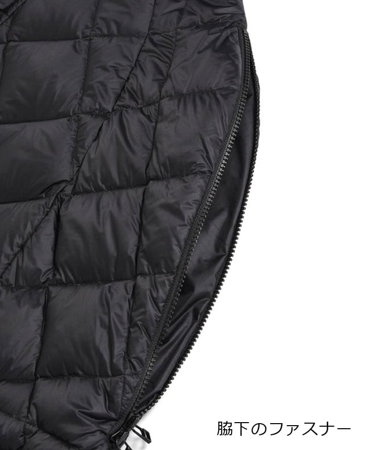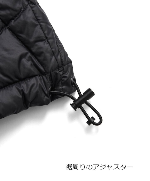素材:表地 ナイロン100%、裏地 ナイロン100%、中わた ダウン95% フェザー5%