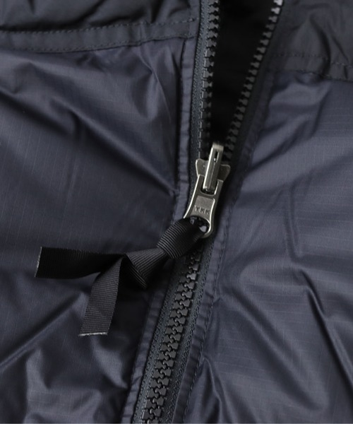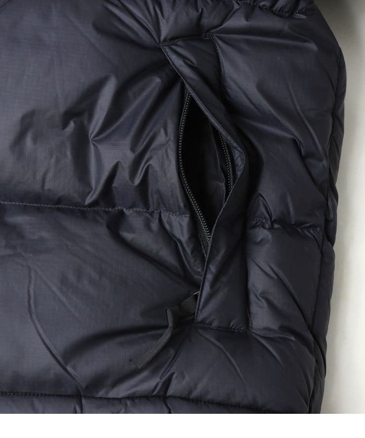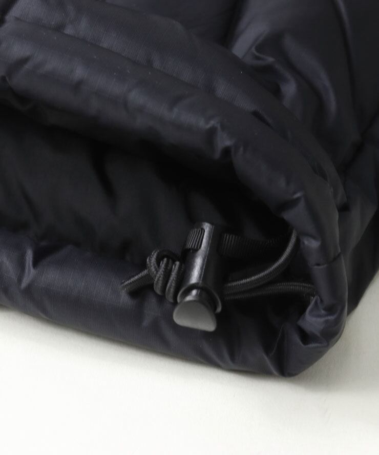 中わたには環境に配慮したリサイクルダウンを採用。表地は強度のある40デニールリップストップナイロンに撥水加工を施し、雨や雪にも対応可能。さらにバックパックの摩擦を考慮し、肩部分は補強仕様になっています。
