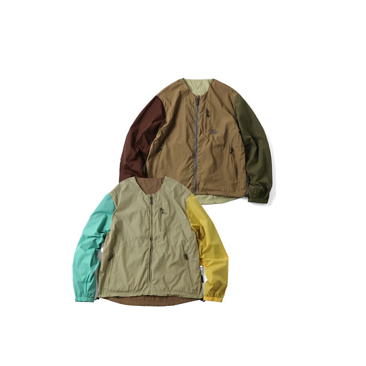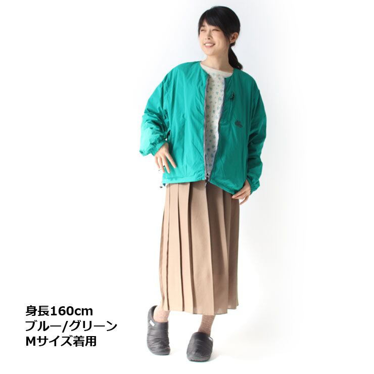 リバーシブル仕様のため、1着で2パターンの着こなしを楽しめるのも魅力。ノーカラーデザインなので、フード付きのトップスやシャツとのレイヤードもすっきり決まります。アウトドアやフェス、キャンプなどのアクティブシーンからタウンユースまで幅広く活躍する万能ジャケットです。