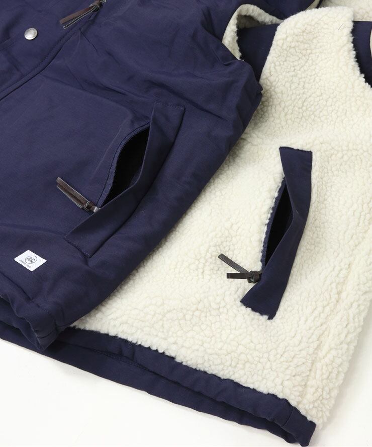 厚手のボアとしっかりとしたナイロン素材を組み合わせ、見た目も着心地も抜群の仕上がりです。