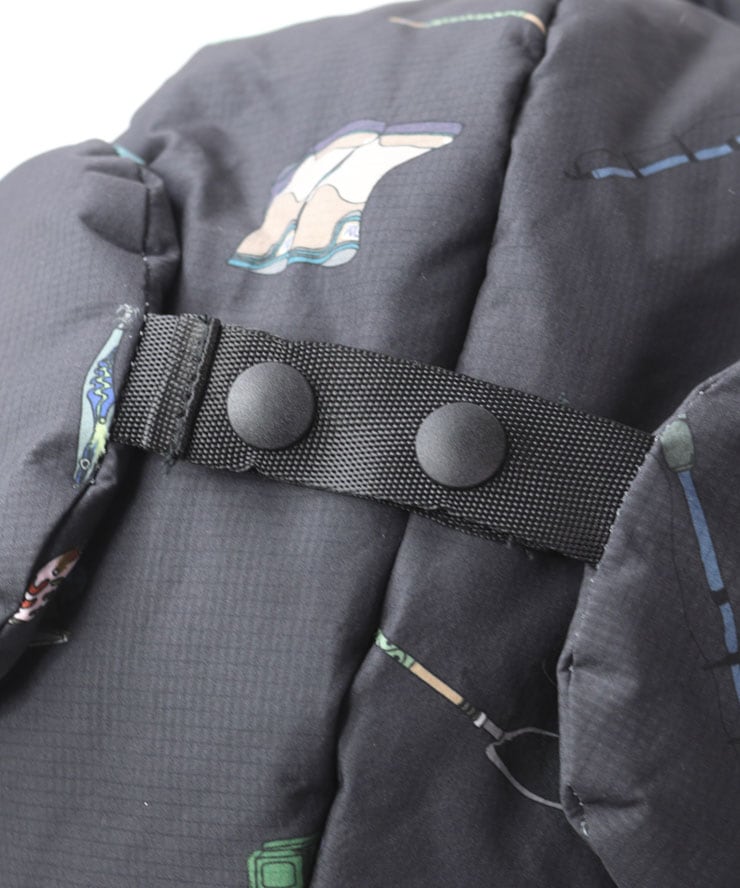 ジムマスターらしい総柄リップストップ生地を使用した中わた入りフライトキャップ。