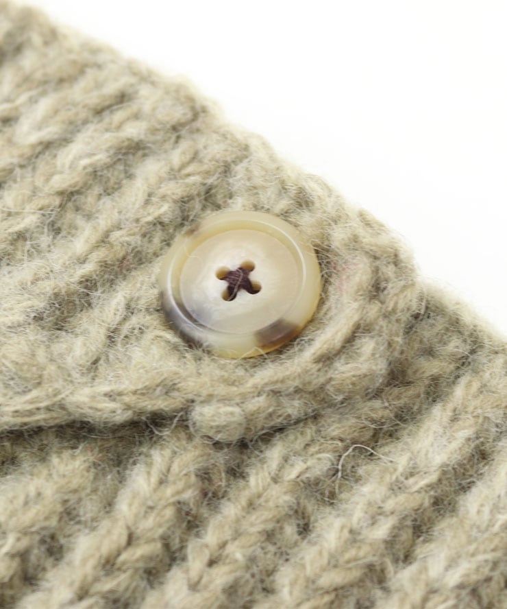 斜めに並んだボタンがデザインのアクセントとなり、さりげないレトロ感を演出。首元にやさしくフィットし、着脱がしやすいのもポイント。カジュアルコーデからきれいめスタイルまで幅広く相性よく、普段使いはもちろん冬のギフトにもおすすめです。