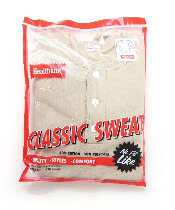 Healthknit(ヘルスニット)から、アーカイブを再構築した“クラシックスウェット ヘンリーネック”が登場。