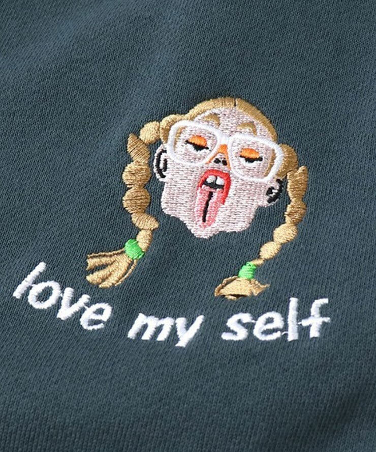 ・ポケット刺繍「LOVE MY SELF」がワンポイント