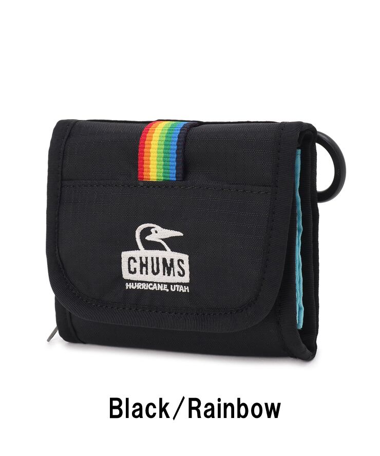 CHUMS チャムス スプリングデールマルチウォレット CH60-4104 二つ折り財布 定期入れ キーケース コンパクトウォレット 210D リップストップナイロン メンズ レディース Black/Rainbow