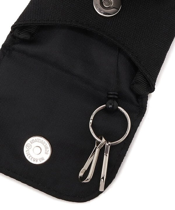 本体口はマグネット仕様で開閉がスムーズ。内側にはキーフック×2(うち1つはリール付き)、背面には交通系ICカード用の透明ポケットを装備し、通勤・通学にも最適です。アウトドアや旅行時にも便利なアイテムです。