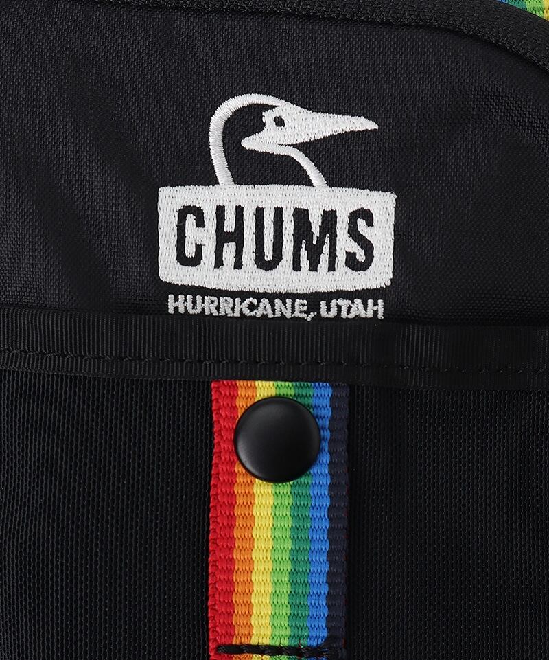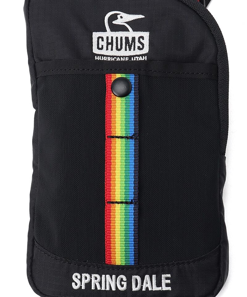 CHUMS チャムス スプリングデール ミニショルダーバッグ CH60-4102 ミニバッグ サコッシュ ポーチ 210Dリップストップナイロン スマホショルダー アウトドア Black/Rainbow