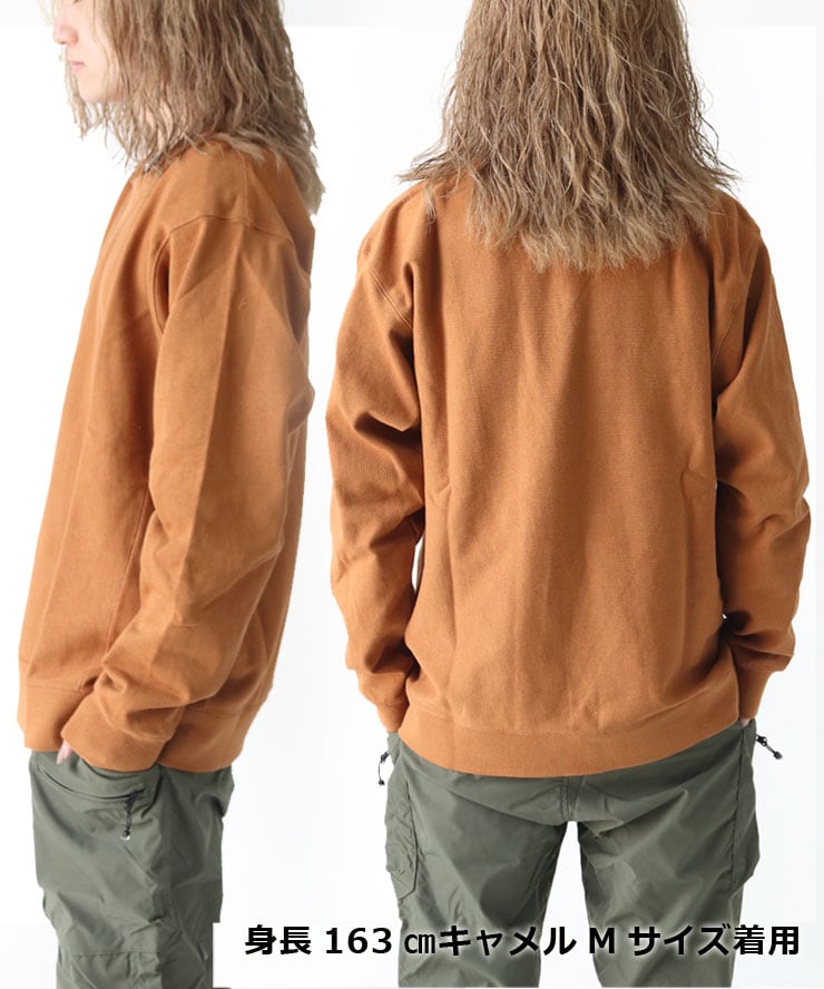 丈夫で安心感のある生地ながら、春夏でも快適に着られるライトな着心地が魅力です。透け感のないしっかりとした素材で、一枚でもきれいに決まる万能スウェットです。