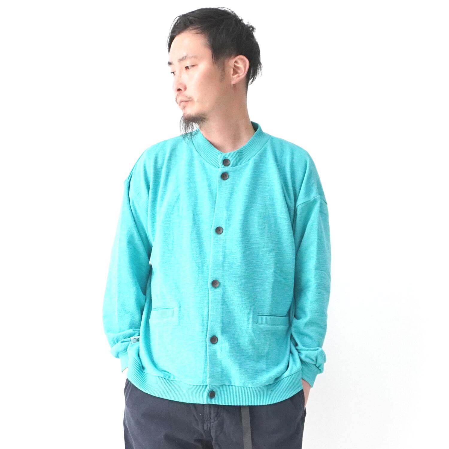 gym master ジムマスター ブロックインレーボタンカーディガン G433748 メンズ レディース ユニセックス カーディガン 通年 軽量 大阪 店舗 取り扱い ターコイズ