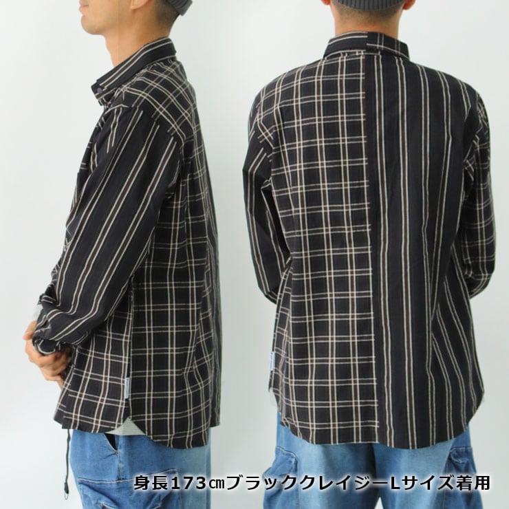 【2WAY仕様】gym master ジムマスター ショールカラー 長袖シャツ チェックシャツ g233732 メンズ レディース ユニセックス オフィスカジュアル 羽織り 春 夏 秋 大阪店舗取扱い ランダムネイビーストライプ(81)