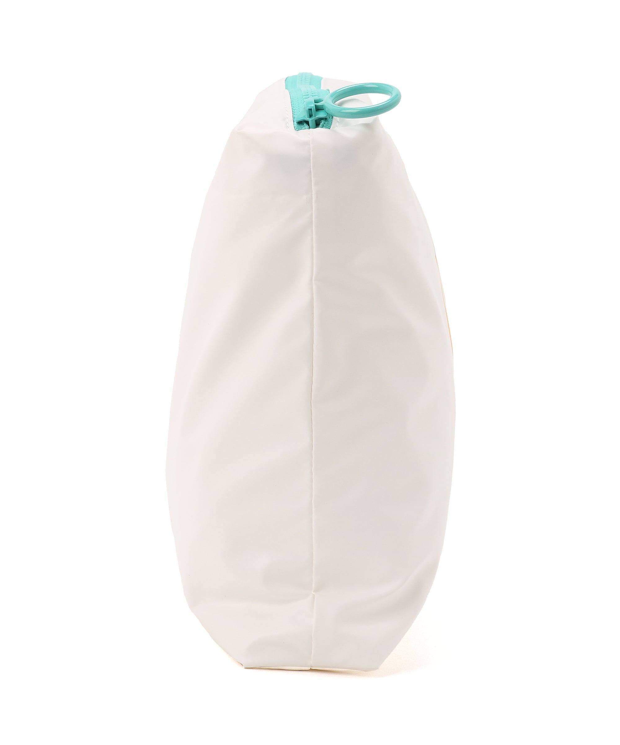 ホワイトをベースに、ランニングTシャツで展開しているグラフィックを落とし込んだデザイン。アイスグリーンのカラーファスナーが爽やかなアクセントになり、スポーティーで軽快な印象に仕上がっています。