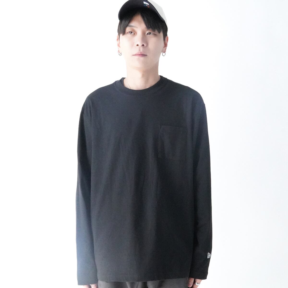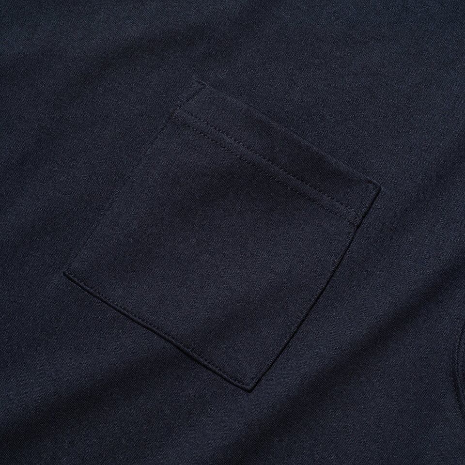 デザインはシンプルなクルーネック仕様。左裾のフラッグロゴがさりげないアクセントになり、1枚でもインナーとしても使いやすい仕上がりです。