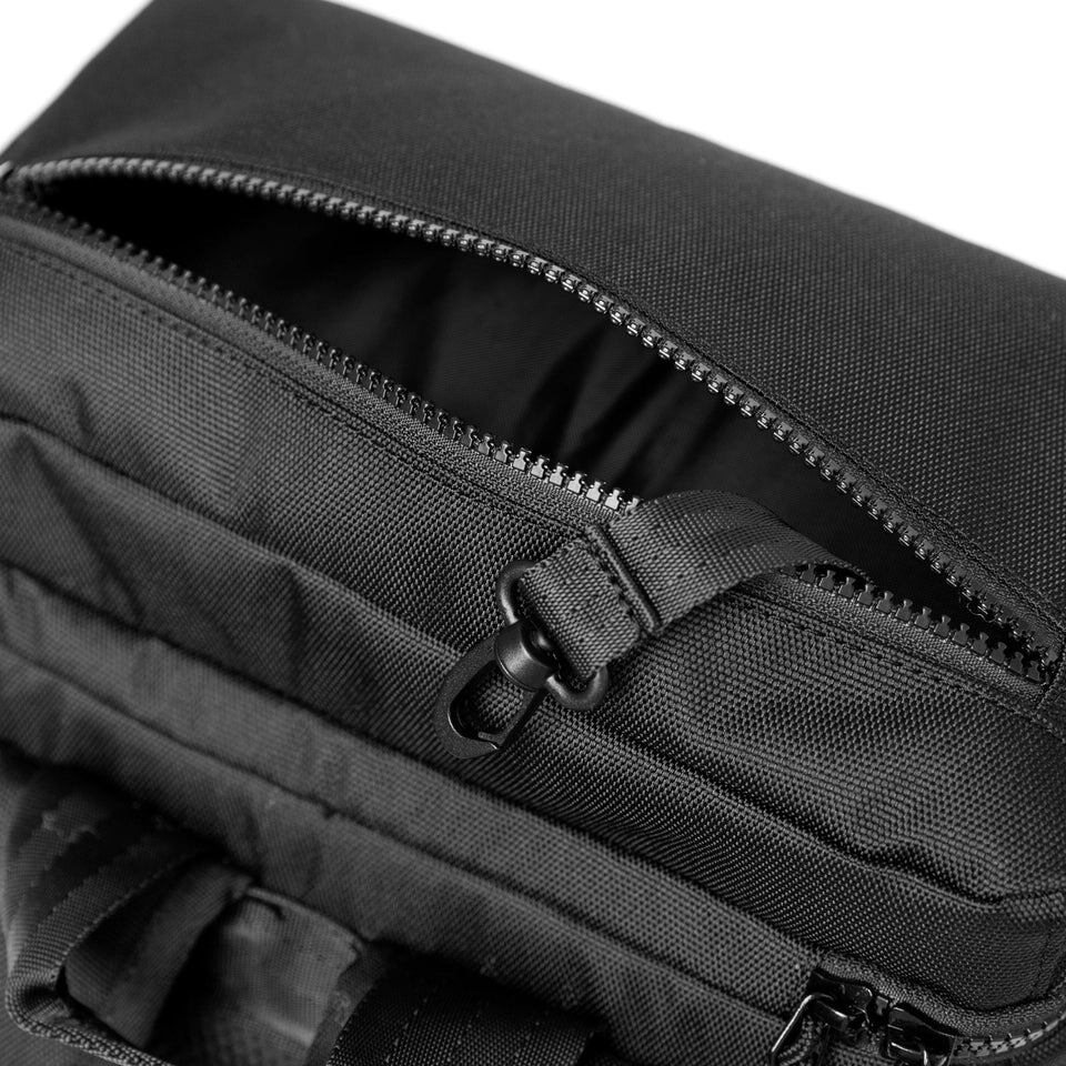 外側上部のクリップループは、別売りのCap Clipを使用すればヘッドウェアホルダーとしても活用可能です。