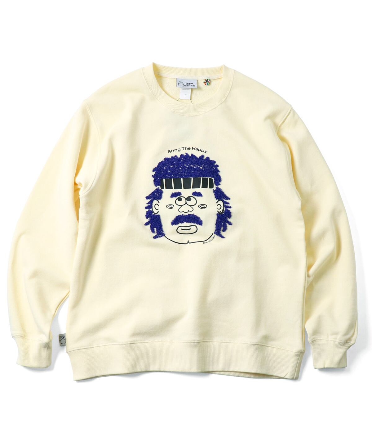 国籍や世代、趣味が違っても「笑顔はみんなをHAPPYにする」というメッセージが込められた、遊び心のあるデザインが魅力のトレーナーです。
