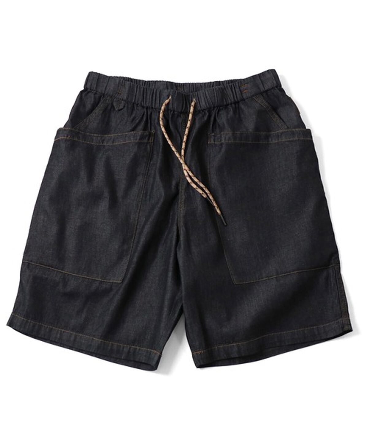 ウエストはゴムとドローコード仕様のイージーパンツタイプで、リラックスした履き心地。膝が隠れる程度の丈感で、ラフなカジュアルスタイルからアウトドアシーンまで幅広く使えるショーツです。