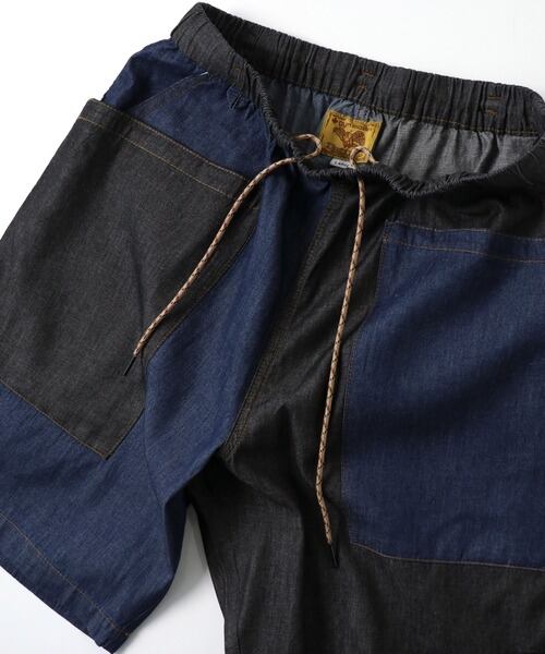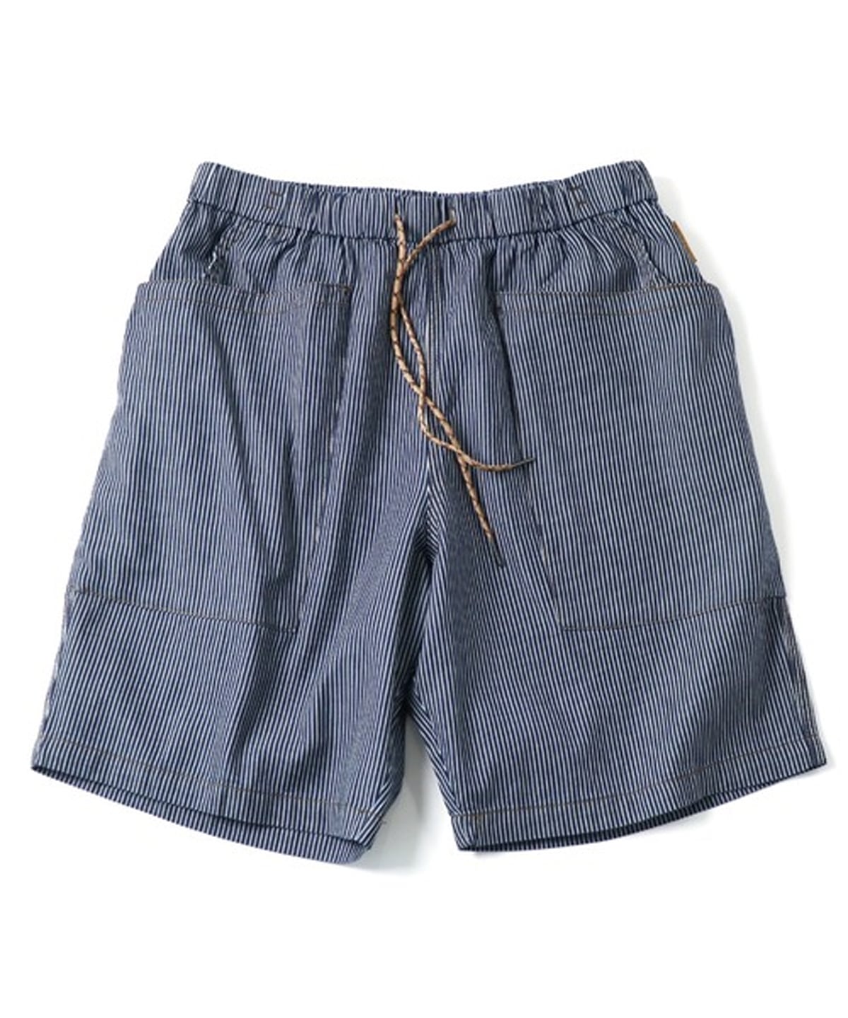 ウエストはゴムとドローコード仕様のイージーパンツタイプで、リラックスした履き心地。膝が隠れる程度の丈感で、ラフなカジュアルスタイルからアウトドアシーンまで幅広く使えるショーツです。
