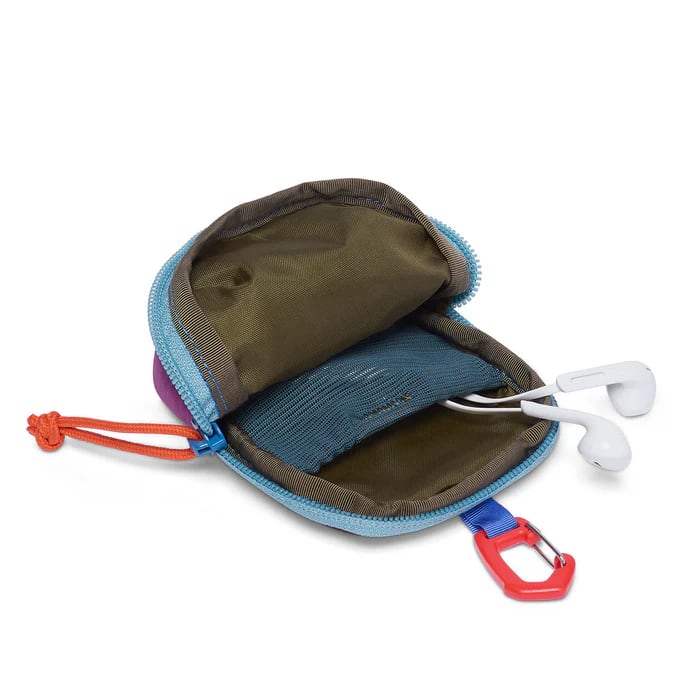 Cotopaxi Allpita Mini Bag Del Día is a compact accessory pouch designed to carry small essentials such as earbuds, lip balm, and credit cards.