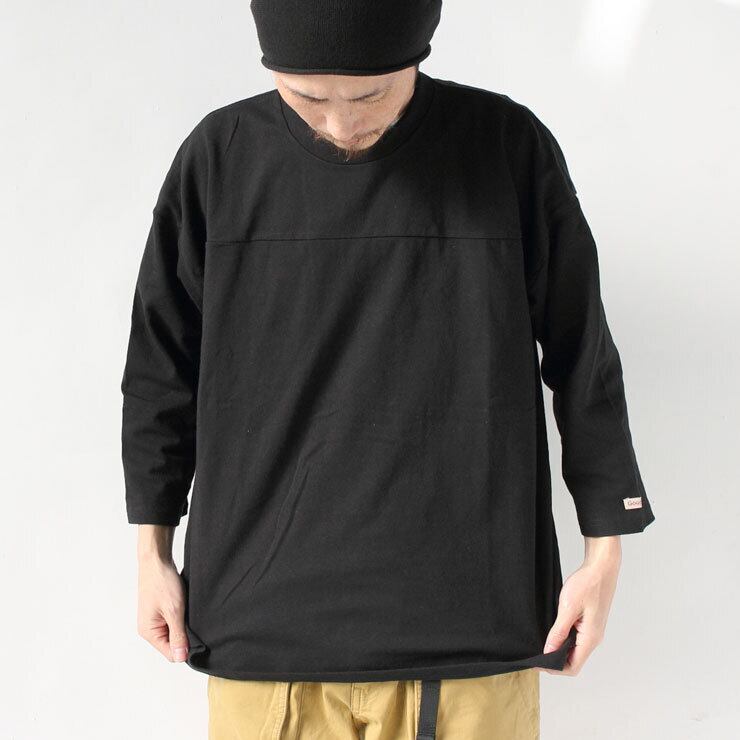 身幅にゆとりを持たせたワイドシルエットで、リラックス感のある着用感。フットボールTシャツ特有のデザインにより、カジュアルやストリートスタイルにも相性抜群です。