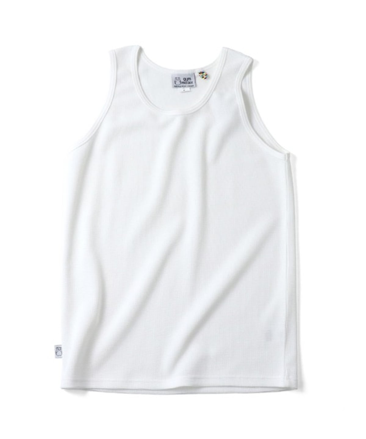 gym master(ジムマスター)の7.2ozドライワッフルタンクトップ。吸水速乾機能を備えたワッフル素材を使用し、暑い季節でも快適に着用できる機能性トップスです。