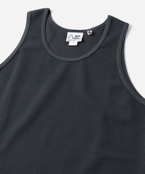 gym master(ジムマスター)の7.2ozドライワッフルタンクトップ。吸水速乾機能を備えたワッフル素材を使用し、暑い季節でも快適に着用できる機能性トップスです。
