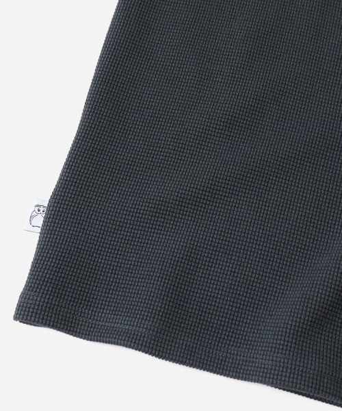 表面は凹凸のあるワッフル編みで通気性が高く、裏面はフラットでさらっとした肌触り。汗をしっかり吸収しながら乾きやすく、ドライな着心地をキープします。程よい7.2ozの厚みで、一枚でもインナーでも使いやすいバランスに仕上がっています。