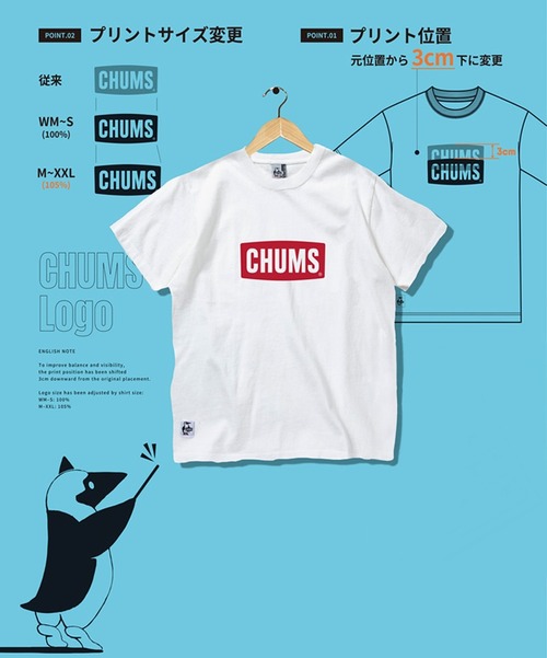 CHUMS チャムス ロゴTシャツ メンズ レディース 半袖Tシャツ コットン 綿100% プリントTシャツ 定番 カジュアル ブランドTシャツ 春夏 CH01-2735