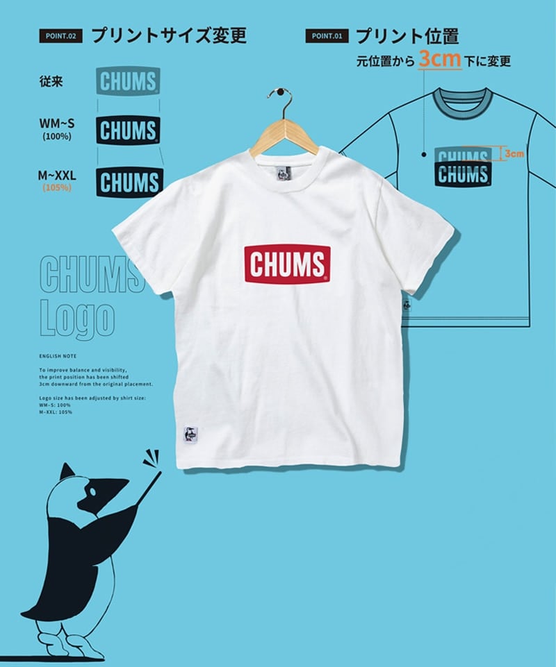 CHUMS チャムス Tシャツ ロゴTシャツ メンズ レディース 半袖Tシャツ コットンTシャツ 綿100% プリントTシャツ ブランドTシャツ カジュアルTシャツ 定番Tシャツ アウトドア フェス キャンプ デイリーウェア 春夏 春物 夏物 CH01-2735