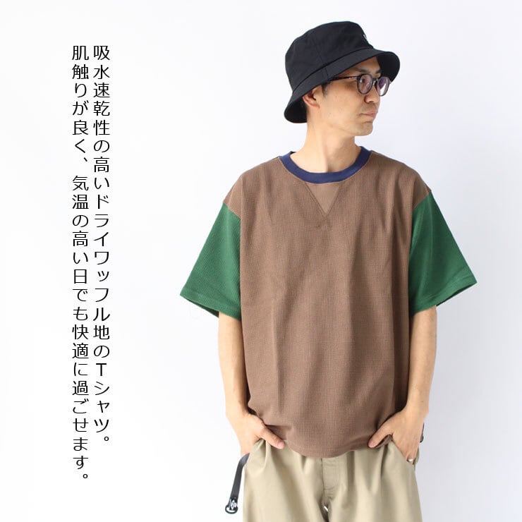 gym master(ジムマスター)の7.2ozドライワッフルクルーネックTシャツ G133780。表面は凹凸感のあるワッフル素材、裏面はさらりとした肌ざわりで、吸水性と速乾性を兼ね備えた半袖Tシャツです。汗ばむ季節でも快適に着やすく、春夏のデイリーコーデからアウトドア、キャンプ、旅行、フェスまで幅広く活躍します。 7.2ozの程よい厚みがあり、1枚で着ても存在感のある仕上がり。ワッフルならではの立体感のある生地が、シンプルながらもコーディネートのアクセントになります。さらに、スウェットを連想させる汗止めデザインがさりげないポイントになっており、カジュアル感とワークテイストを両立した一着です。 デニム、カーゴパンツ、ショートパンツ、イージーパンツなど幅広いボトムスと相性が良く、街着としてはもちろん、アウトドアファッションやキャンプコーデにもおすすめ。吸水速乾機能付きで、暑い季節の普段使いにも便利なメンズ半袖Tシャツです。 【ブランド】gym master ジムマスター 【商品名】7.2ozドライワッフルクルーネック 【品番】G133780 【素材】コットン62% ポリエステル38% 【仕様】吸水速乾 ドライワッフル素材 クルーネック 半袖 【対象】メンズ 【シーズン】春 夏 春夏 検索キーワード gym master ジムマスター 半袖 Tシャツ メンズ ワッフルTシャツ ドライワッフル クルーネック 吸水速乾 速乾Tシャツ 春夏 カジュアル アウトドア キャンプ フェス G133780