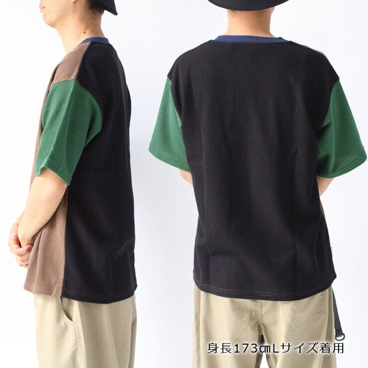 7.2ozの程よい厚みがあり、1枚で着ても存在感のある仕上がり。ワッフルならではの立体感のある生地が、シンプルながらもコーディネートのアクセントになります。さらに、スウェットを連想させる汗止めデザインがさりげないポイントになっており、カジュアル感とワークテイストを両立した一着です。