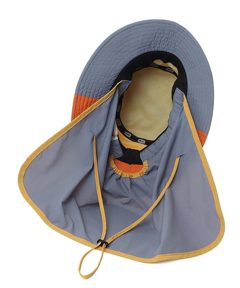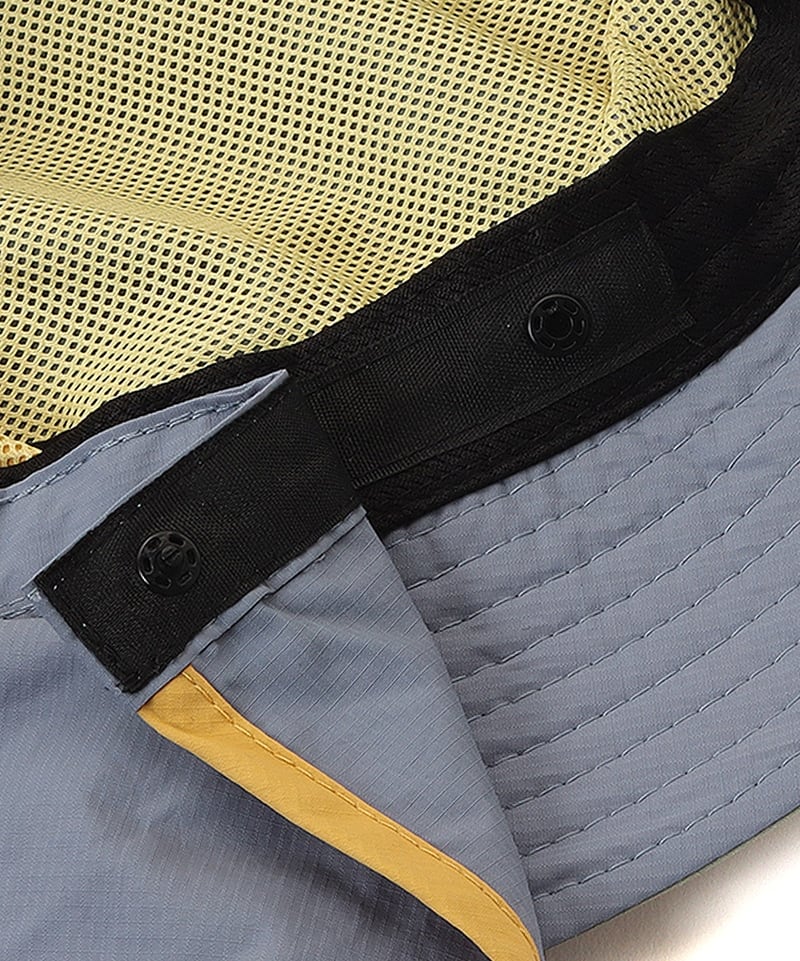 取り外し可能な日よけカバーにより、首元までしっかり紫外線対策が可能。あご紐付きで風の強い日でも安心して着用できます。後部のコードロックでフィット感の調整も簡単です。