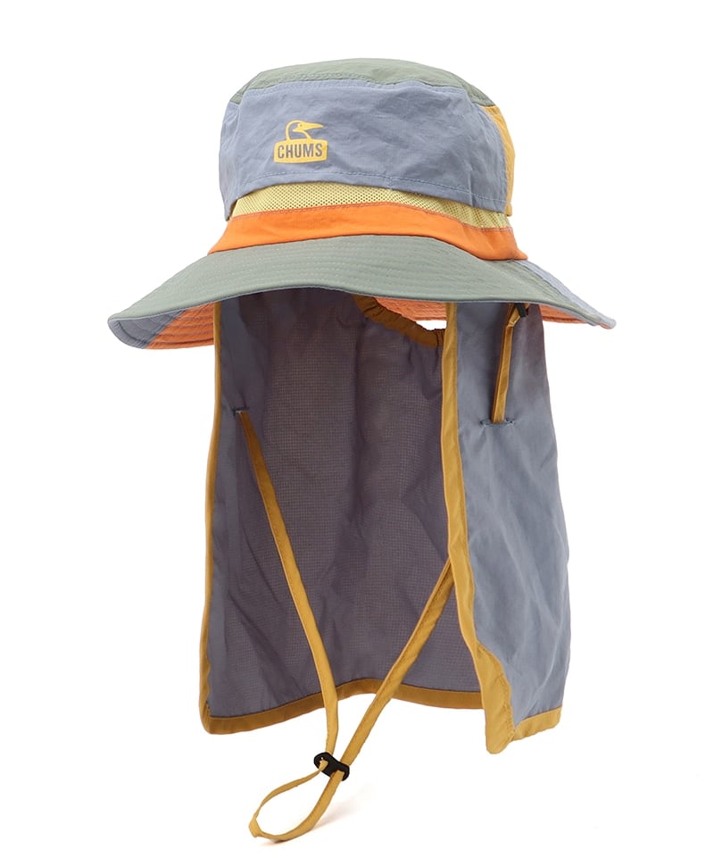 CHUMS(チャムス)のサンシェードハット。首元までしっかりカバーできる日よけ付きで、アウトドアから日常まで幅広く活躍する機能性ハットです。