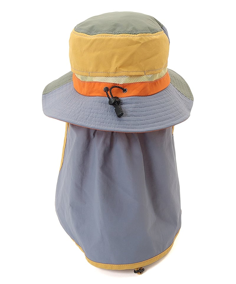 取り外し可能な日よけカバーにより、首元までしっかり紫外線対策が可能。あご紐付きで風の強い日でも安心して着用できます。後部のコードロックでフィット感の調整も簡単です。