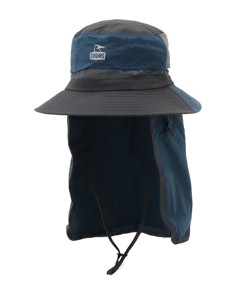 CHUMS(チャムス)のサンシェードハット。首元までしっかりカバーできる日よけ付きで、アウトドアから日常まで幅広く活躍する機能性ハットです。