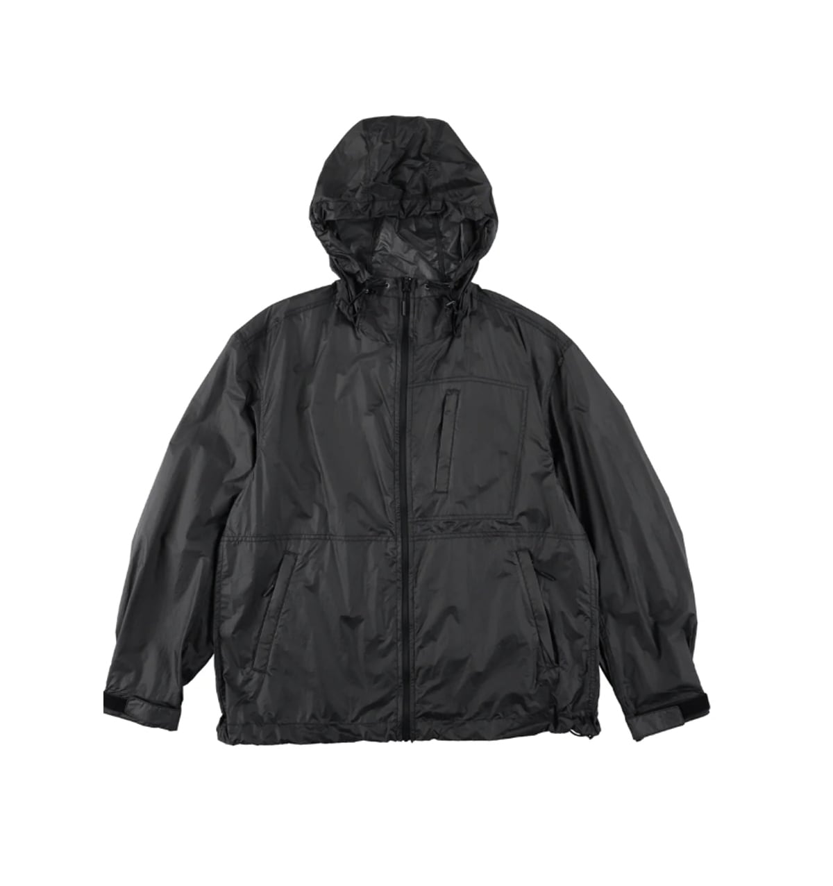 ポケッタブル仕様でコンパクトに収納可能。バッグに入れて持ち運びやすく、気温差のあるシーンや急な天候変化にも対応できる便利なライトアウターです。