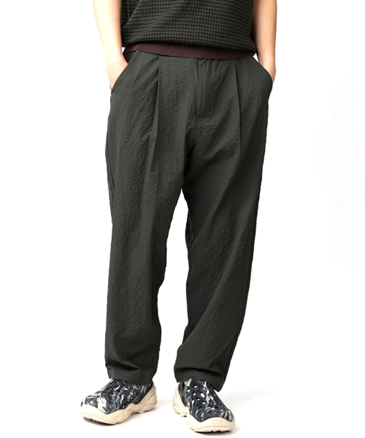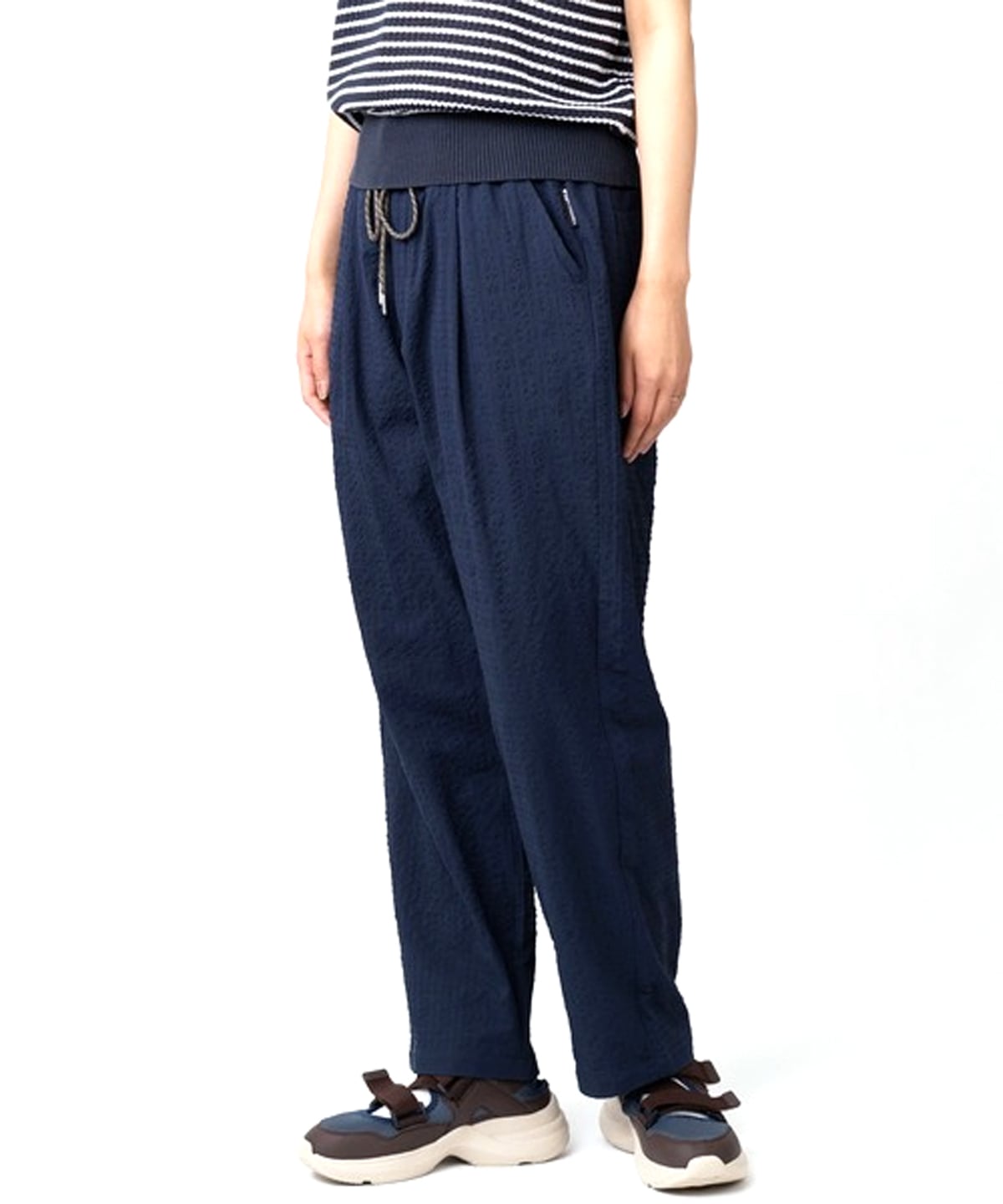 gym master(ジムマスター)のシアサッカータックパンツ。清涼感のあるシアサッカー素材を使用した、夏に最適な軽量ボトムスです。