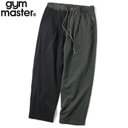 gym master ジムマスター シアサッカー タックパンツ メンズ 夏パンツ イージーパンツ 涼しい 軽量 薄手 テーパード カジュアル アウトドア G733722 ブラック×オリーブ