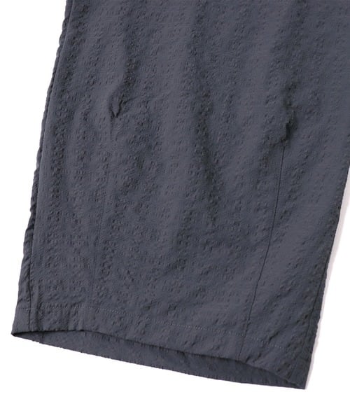 シアサッカー特有の凹凸ある生地が肌との接触を減らし、汗ばむ時期でもベタつきにくく爽やかな穿き心地をキープ。見た目にも清涼感があり、夏コーデに最適な一本です。