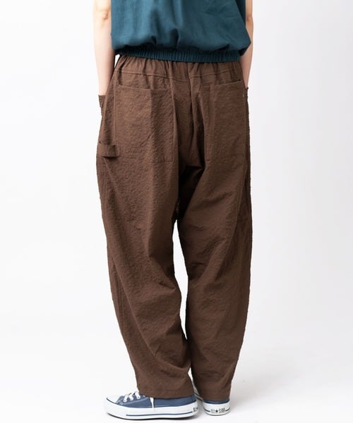 シアサッカー特有の凹凸ある生地が肌との接触を減らし、汗ばむ時期でもベタつきにくく爽やかな穿き心地をキープ。見た目にも清涼感があり、夏コーデに最適な一本です。