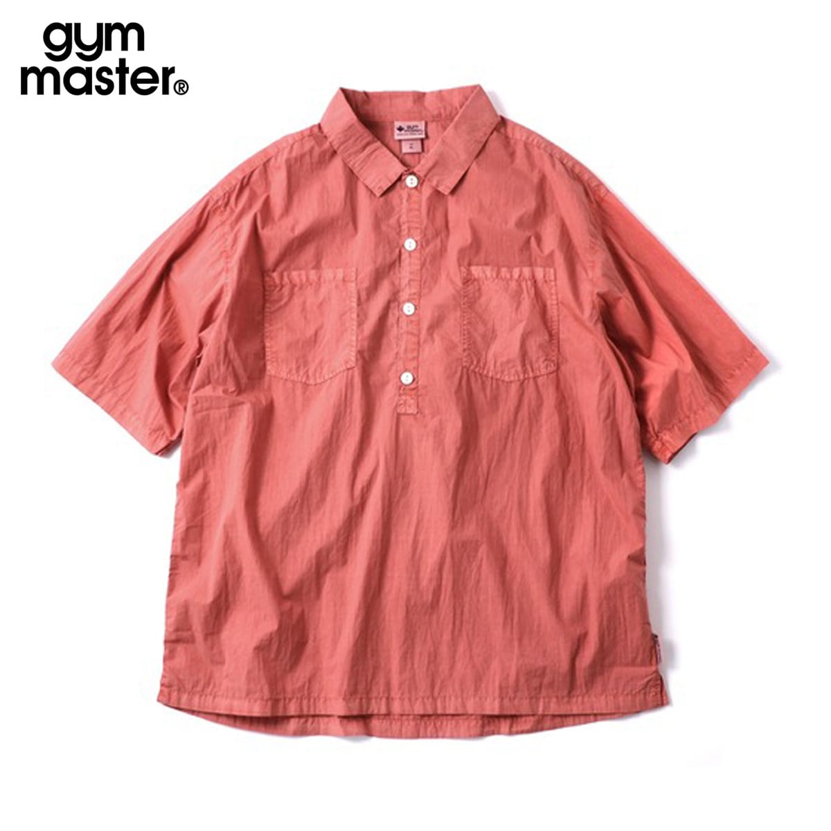 gym master ジムマスター ピグメント加工 コットンナイロン プルオーバーシャツ メンズ|軽量・通気・アウトドア対応|春夏秋対応 サーモンピンク