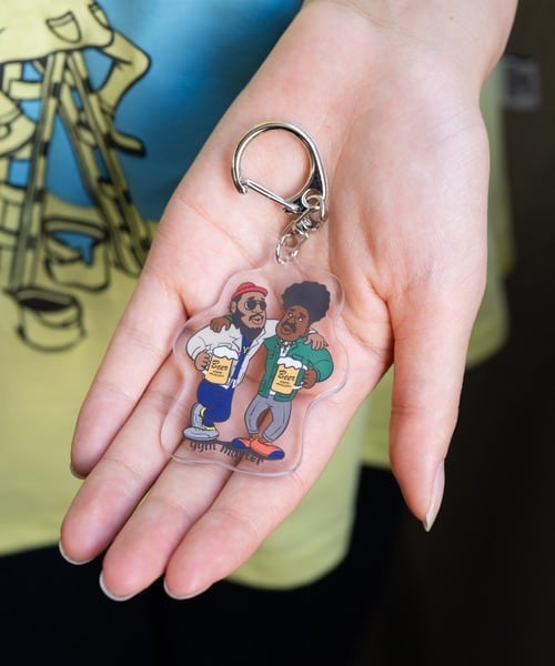 夏のTシャツで好評だったデザインをアクリルキーホルダーとして展開。透明感のある素材に鮮やかなプリントを施し、小さいながらもしっかりと存在感を発揮します。