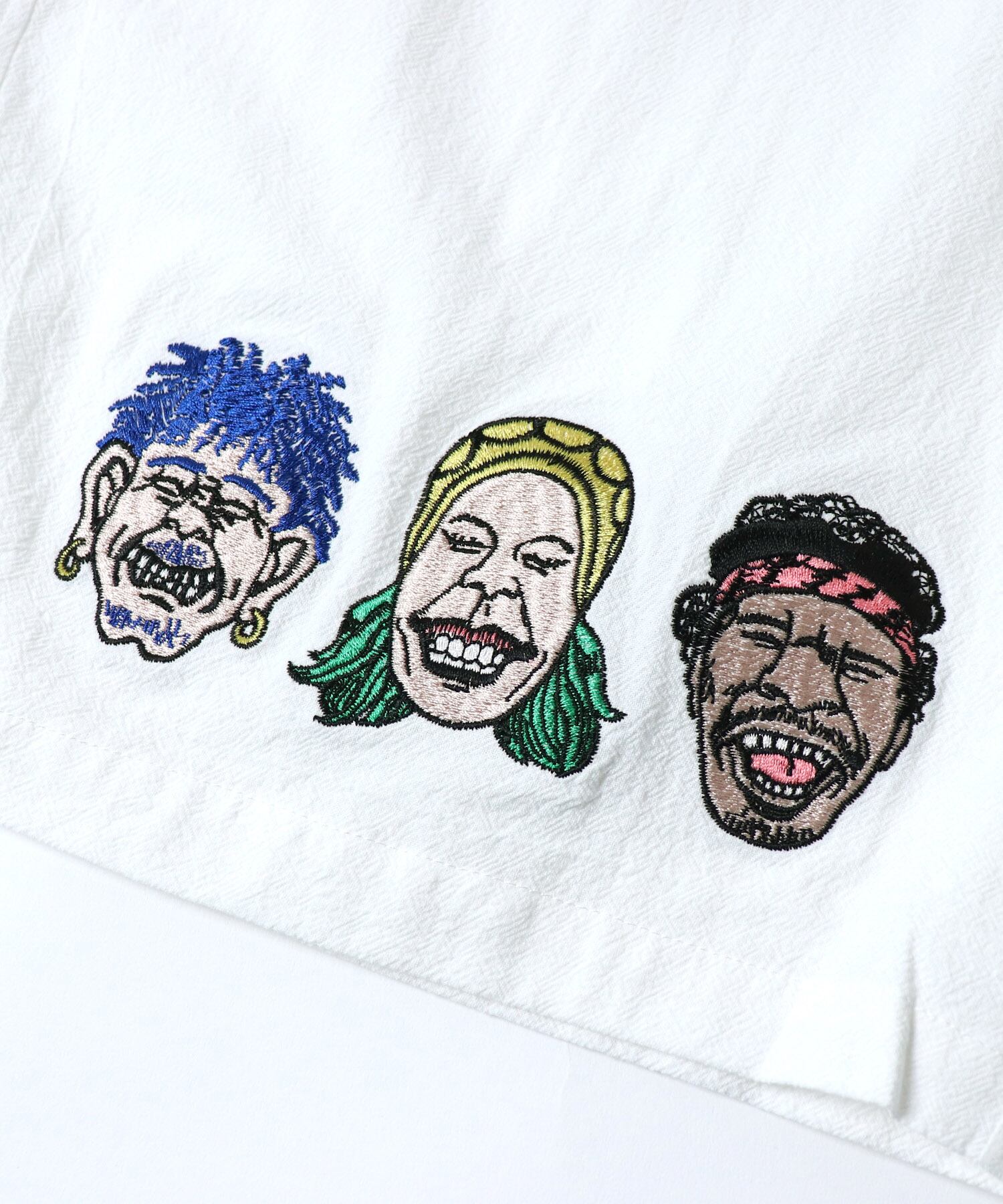 gym master(ジムマスター)のJUST SMILE刺繍ショーツ。遊び心あふれる刺繍デザインと快適な穿き心地が魅力のショートパンツです。