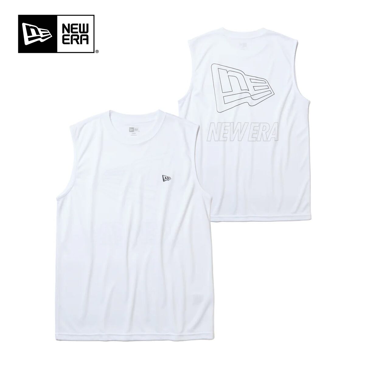 NEW ERA(ニューエラ)のスリーブレス テックTシャツ Outline Logo。高機能素材と大胆なロゴデザインを組み合わせた、スポーツからタウンユースまで活躍するノースリーブTシャツです。