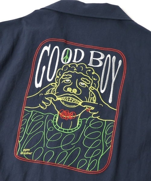 gym master ジムマスター GOOD BOY 刺繍シャツ メンズ レディース 開襟シャツ 半袖 オープンカラー バック刺繍 ビッグシルエット コットン100% 夏 カジュアル ペア ホワイト