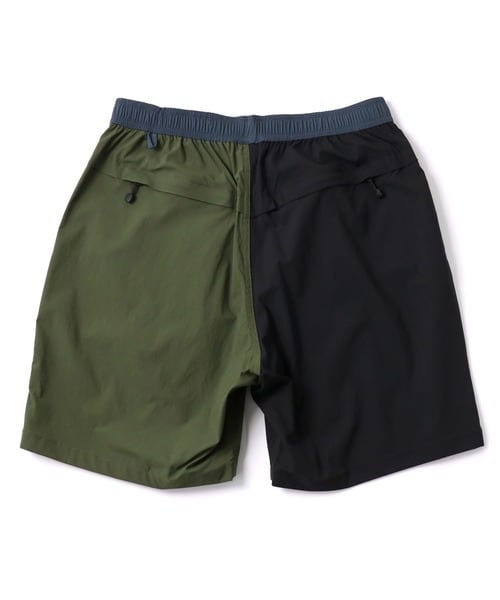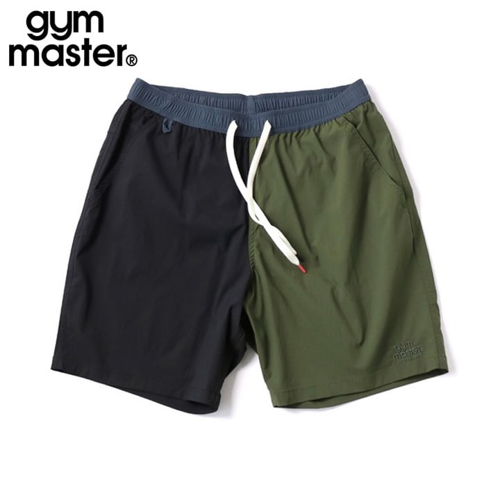 gym mastr ジムマスター マイクロリップナイロン ショートパンツ メンズ|軽量 撥水 速乾 ストレッチ|アウトドア・水陸両用・夏用ショーツ ブラック×オリーブ